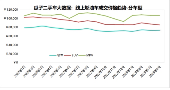 趨勢三:燃油SUV受降價潮影響最大,4月成交均價降近2000元,創(chuàng)15個月來新低