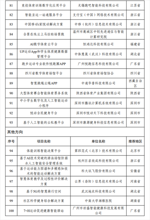 人民網(wǎng)北京5月6日電 (記者申佳平)據(jù)工業(yè)和信息化部官網(wǎng)消息,近日,工業(yè)和信息化部、國家體育總局公布了100項(xiàng)2022年度智能體育典型案例,涉及5個(gè)方向。