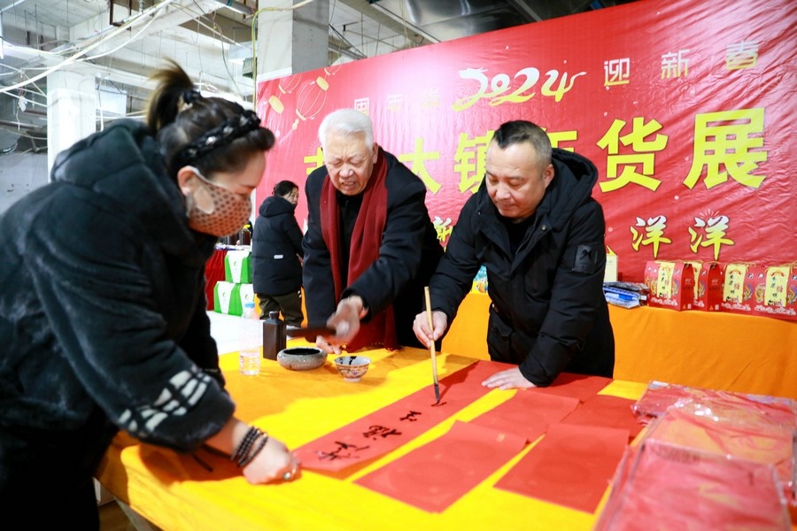 著名書法家柴義現(xiàn)場(chǎng)為市民免費(fèi)書寫春聯(lián)