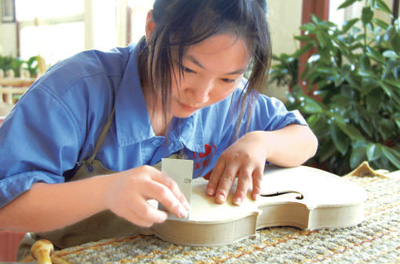 為提升品質(zhì),公司從阿爾卑斯山等地進口云杉、楓木等高檔木料,以國際化標準改良產(chǎn)品,提高制作水平和裝配工藝,從普及提琴生產(chǎn)向中高端轉(zhuǎn)型。公司從高校聘請制琴專業(yè)人才,成立專門的工作室,接收定制提琴的高端訂單,一把普通的定制琴價格已達3萬元左右,自主品牌“華蘊”的名聲也越來越響。