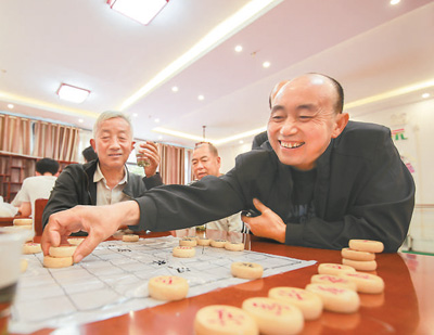 貴州省黔東南苗族侗族自治州岑鞏縣在新型城鎮(zhèn)化建設(shè)中,大力建設(shè)社區(qū)服務(wù)中心、圖書室等場所,完善服務(wù)功能,提升群眾幸福感。圖為社區(qū)居民在該縣大有鎮(zhèn)大坪同心社區(qū)下象棋。