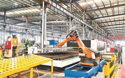江蘇沭陽(yáng)經(jīng)開(kāi)區(qū)的一家自動(dòng)化裝備公司車(chē)間內(nèi),激光柔性生產(chǎn)線正在運(yùn)轉(zhuǎn)。