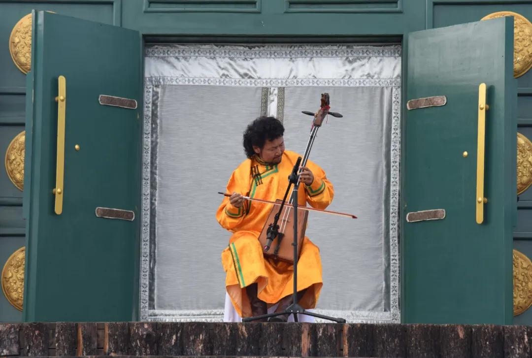 蒙古族非遺節(jié)目組合、二人臺(tái)歌舞《掛紅燈》、馬頭琴獨(dú)奏等具有強(qiáng)烈草原符號(hào)的節(jié)目使現(xiàn)場(chǎng)高潮不斷?,F(xiàn)場(chǎng)烏蘭圖雅深情誦讀《敕勒歌》引來(lái)陣陣掌聲。