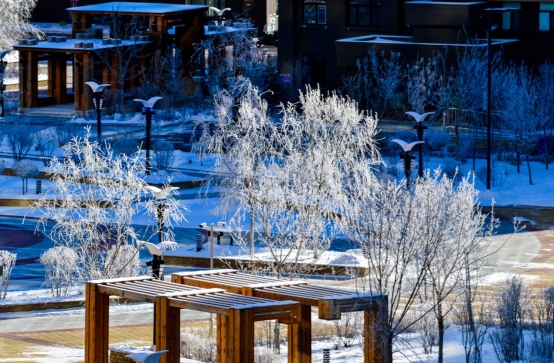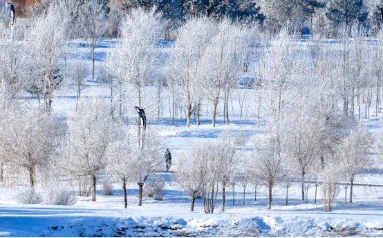 據(jù)了解,霧凇俗稱冰花、樹掛等,是低溫時空氣中水汽直接凝華,或過冷霧滴直接凍結(jié)在物體上的乳白色冰晶沉積物,表現(xiàn)為白色不透明的粒狀結(jié)構(gòu)沉積物。霧凇形成需要?dú)鉁睾艿?,而且水汽又很充分的自然條件,是非常難得的自然奇觀。