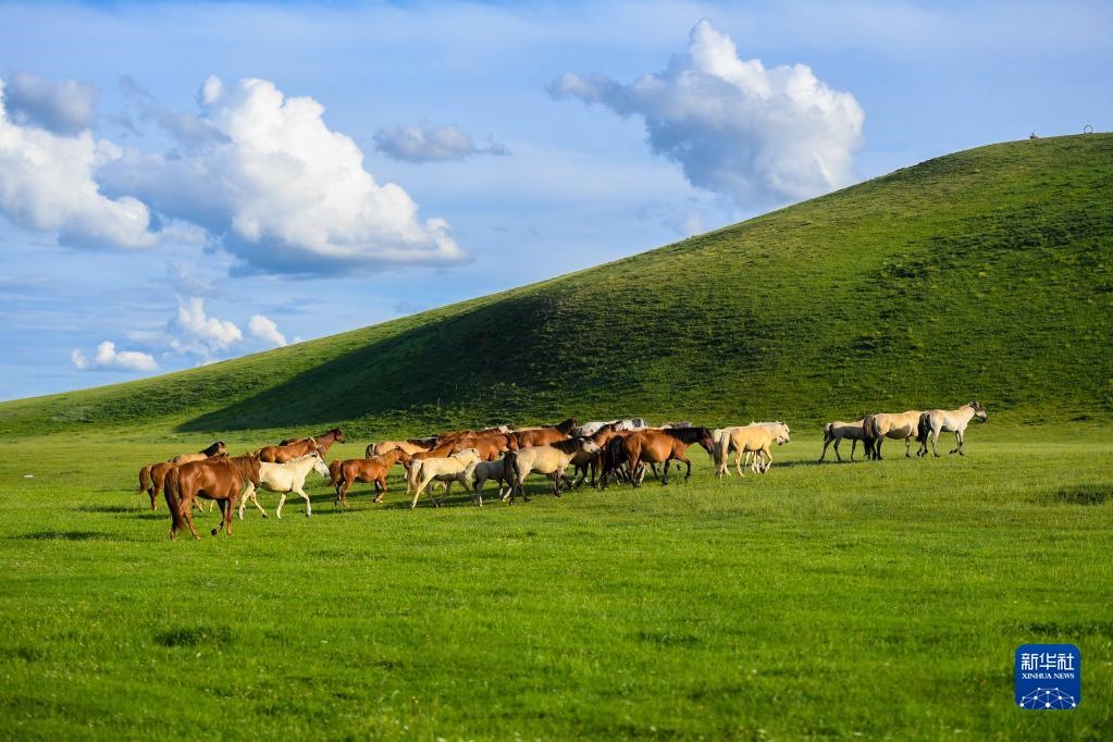 夏日,內(nèi)蒙古錫林郭勒盟西烏珠穆沁旗的草原綠草如茵,風(fēng)光旖旎。新華社記者任軍川攝