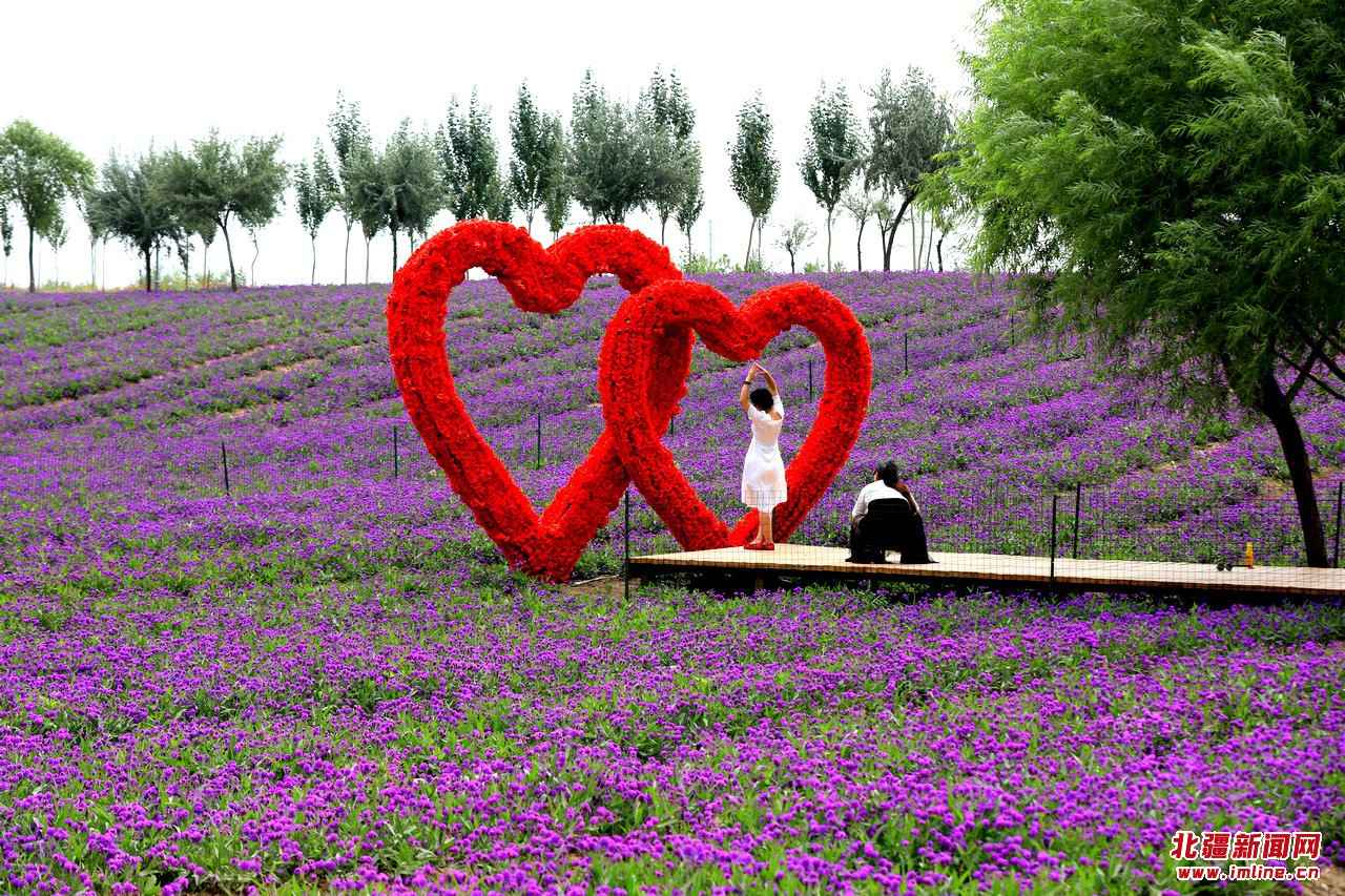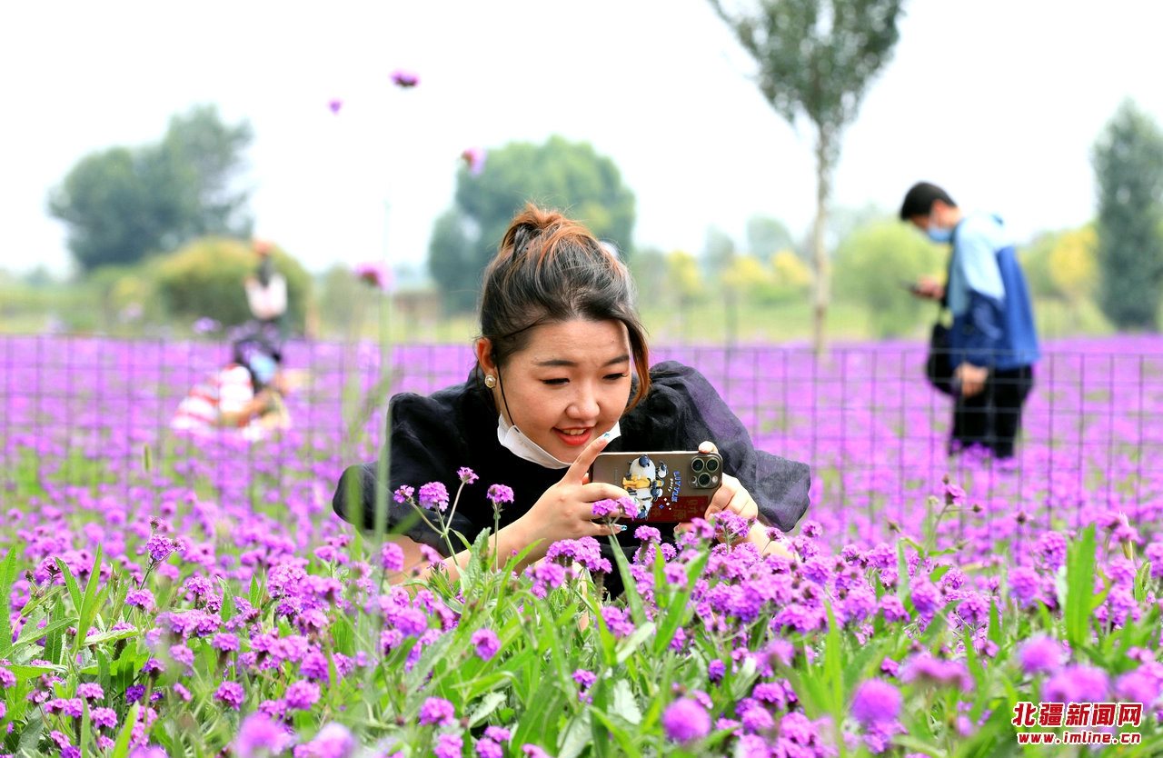 8月4日,市民在呼和浩特馬鞭草花海“打卡”。