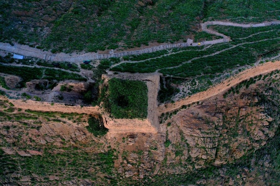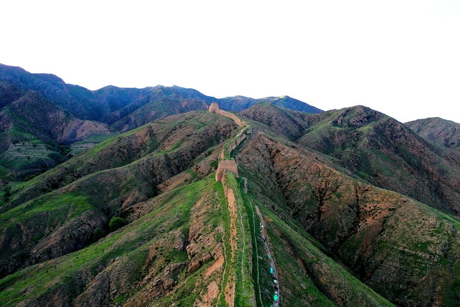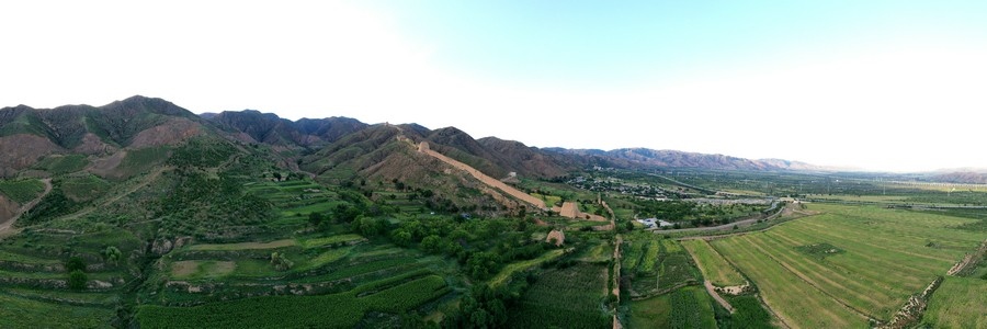 8月16日,從空中視角,俯瞰山西大同天鎮(zhèn)李二口長城。