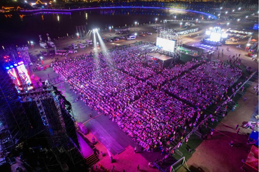 8月12日,游客在呼和浩特市玉泉區(qū)大黑河郊野公園林下空間露營地露營游玩。新華網發(fā)(丁根厚 攝)