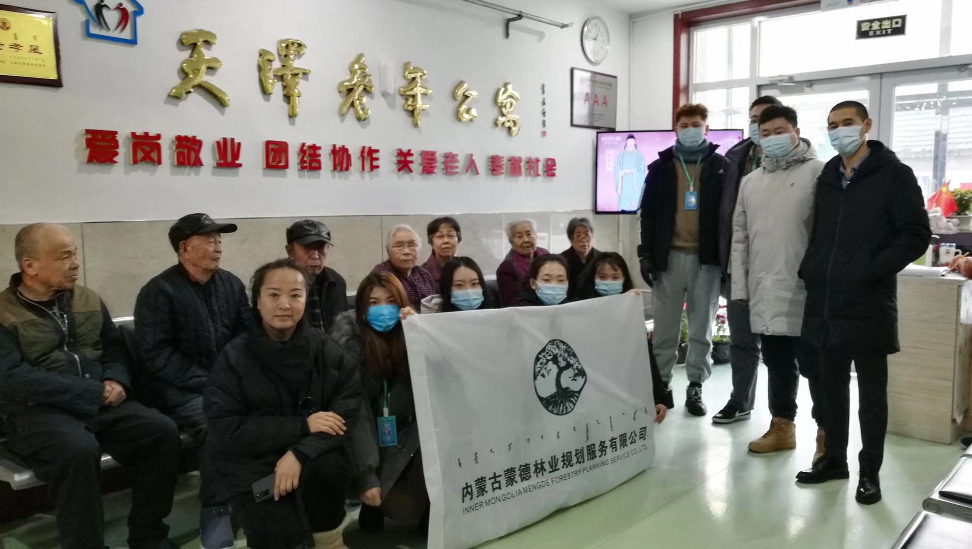 2020年12月15日,內蒙古蒙德林業(yè)規(guī)劃服務有限公司8名員工到天澤老年公寓開展社會實踐活動,贈送了口罩、消毒液、食用油和水果等物資,并且了解老人們的生活狀況和生活態(tài)度,關愛老年群體,慰問敬老院老人,給他們送去一份關愛和溫暖。讓他們老有所樂,感受到社會對老人的關懷。希望給老人們的生活增添一份色彩,也更能體現(xiàn)企業(yè)愛心以及社會責任感,鍛煉和豐富員工業(yè)余文化活動。宣傳和弘揚公益事業(yè),秉承尊敬和愛護老人的思想砥礪前行。本次活動以為民服務的宗旨,緊緊圍繞公益志愿服務為奮斗目標,弘揚尊老敬老的傳統(tǒng)美德,共建和諧社會。