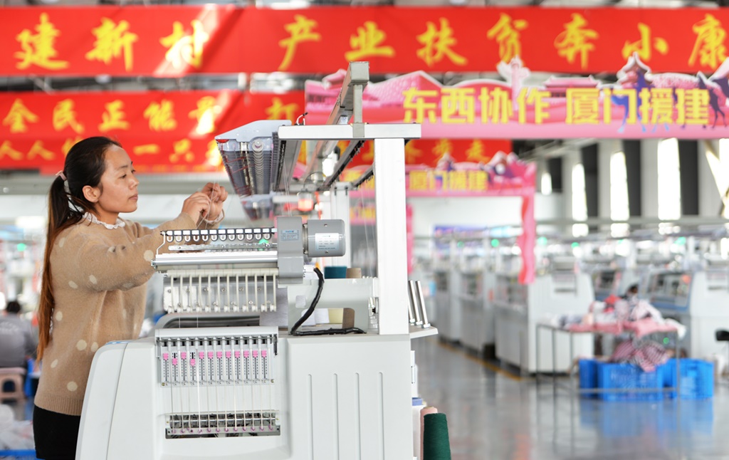 近年來(lái),在東西部扶貧協(xié)作機(jī)制下,福建省廈門(mén)市幫助甘肅省臨夏回族自治州引進(jìn)服裝鞋帽、戶外用品、文化旅游、農(nóng)產(chǎn)品深加工等企業(yè),吸納當(dāng)?shù)剞r(nóng)民就地就近就業(yè)。新華社發(fā)(史有東 攝)