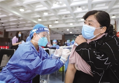 在接種臺(tái)前,醫(yī)護(hù)人員分工明確,核驗(yàn)接種人群身份信息、詢(xún)問(wèn)病史和疫苗接種情況,每個(gè)環(huán)節(jié)有條不紊地進(jìn)行著。