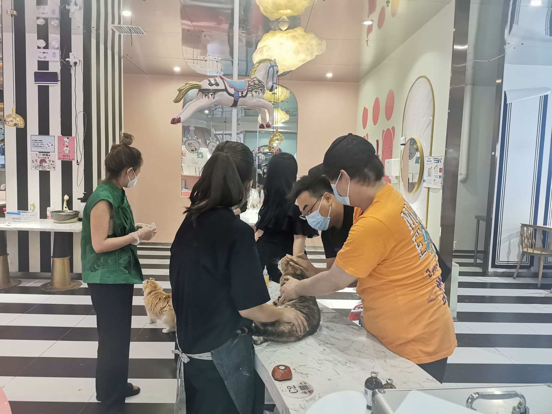 “志愿者團(tuán)隊(duì)連續(xù)幾天在做這個(gè)事情,團(tuán)隊(duì)里有寵物醫(yī)生,前幾天幫貓咪打針吃藥,還有志愿者與物業(yè)協(xié)調(diào)恢復(fù)供電,讓貓舍保持通風(fēng),目前貓咪存在耳螨、鼻支等小病,我們正在對(duì)其積極治療,專(zhuān)業(yè)愛(ài)心人士也源源不斷地向店內(nèi)郵寄寵物藥品,店內(nèi)物資充足,希望市民們不要送貓糧或者現(xiàn)場(chǎng)投喂,由于貓咪腸胃脆弱,貿(mào)然換糧會(huì)導(dǎo)致嘔吐、拉肚子?!币幻灾驹刚吒嬖V記者。店主目前在北京,正在積極協(xié)調(diào)解決此事,也通過(guò)志愿者,從北京向店內(nèi)寄送了一些難買(mǎi)到的貓咪必需藥品,志愿者們希望網(wǎng)友們不要對(duì)店主進(jìn)行網(wǎng)暴和人肉搜索,而是抱以積極心態(tài),推動(dòng)事件迅速解決。