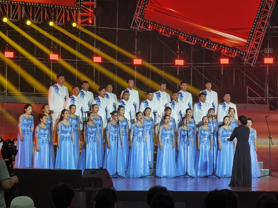 8月7日,第二場(chǎng)“唱響北疆”全區(qū)群眾合唱音樂(lè)會(huì),激情飛揚(yáng),穿越時(shí)空的經(jīng)典紅色歌曲再次響徹耳畔?;炻暫铣?、童聲合唱、女聲合唱、混聲無(wú)伴奏合唱等多種形式的合唱表演接連上場(chǎng)。