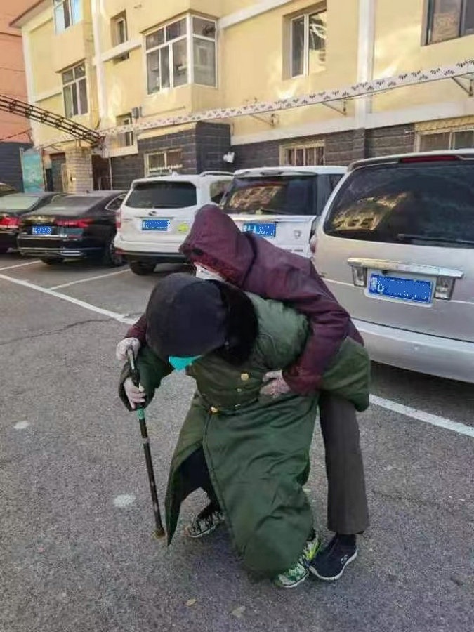 “還有一個(gè)老太太,剛做完手術(shù)時(shí)間不長,走路很慢,我就過去背上老人家去采集核酸?!睆垈フf,“不光張書府老人,我現(xiàn)在照顧著好幾個(gè)老人,都給他們留了電話,這些老人想吃什么菜了,會(huì)寫個(gè)單子聯(lián)系我,我會(huì)去給他們買回來。在這個(gè)小區(qū)里,有太多這樣的老人了,我們會(huì)盡自己所能,幫一個(gè)是一個(gè)?!?/p>