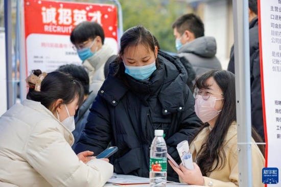 2月17日,人們在中國成都人力資源服務產(chǎn)業(yè)園查看招聘信息,尋找工作機會。