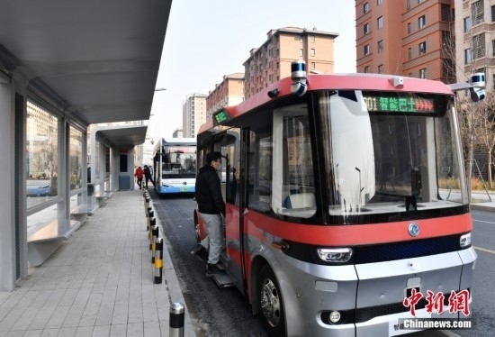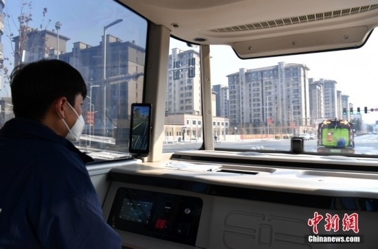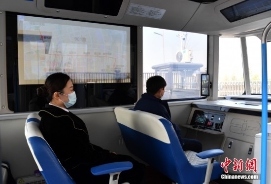 2月22日,智能網(wǎng)聯(lián)巴士901線測試車輛準(zhǔn)備發(fā)車。雄安新區(qū)的智能網(wǎng)聯(lián)巴士近期正在進(jìn)行投入運(yùn)營前的道路測試,該巴士配備了超高感度攝像頭、超聲波雷達(dá)、激光雷達(dá)、毫米波雷達(dá)等感知設(shè)備,組成了車輛的“眼睛”。車輛可自主識別紅綠燈、道路提示牌和車道標(biāo)線等,做出跟車、超車、停車等動(dòng)作。中新社記者 韓冰 攝