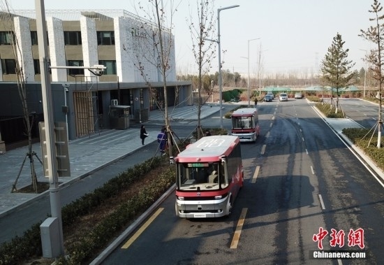2月22日,智能網(wǎng)聯(lián)巴士901線測試車輛與普通城市公交車駛出公交站臺。雄安新區(qū)的智能網(wǎng)聯(lián)巴士近期正在進(jìn)行投入運(yùn)營前的道路測試,該巴士配備了超高感度攝像頭、超聲波雷達(dá)、激光雷達(dá)、毫米波雷達(dá)等感知設(shè)備,組成了車輛的“眼睛”。車輛可自主識別紅綠燈、道路提示牌和車道標(biāo)線等,做出跟車、超車、停車等動(dòng)作。中新社記者 韓冰 攝