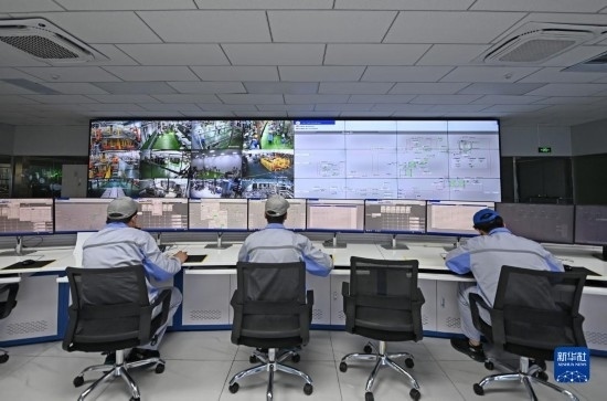 在天津海河乳品有限公司智能化生產(chǎn)線控制中心內(nèi),工作人員在監(jiān)控生產(chǎn)線運轉情況(2月20日攝)。