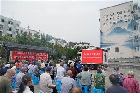 忠縣法院利用“車載便民法庭”開(kāi)展普法宣傳。