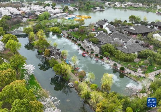 近日,浙江省寧波市植物園內(nèi)的櫻花、海棠、郁金香等競相綻放,與垂柳、古建筑等相互映襯,構(gòu)成一幅幅和美的春景。
