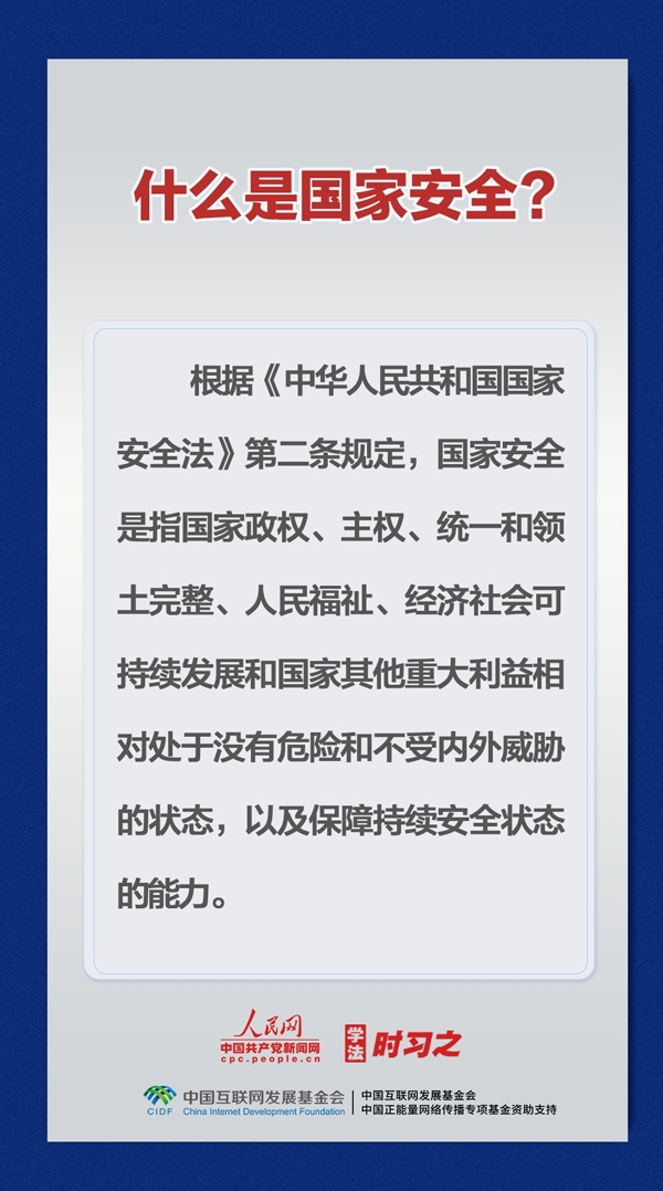 今年4月15日是第八個(gè)全民國家安全教育日,主題是“貫徹總體國家安全觀,增強(qiáng)全民國家安全意識和素養(yǎng),夯實(shí)以新安全格局保障新發(fā)展格局的社會基礎(chǔ)”。維護(hù)國家安全,人人有責(zé),人人可為,這些知識你需要掌握。