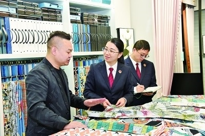 浙江省紹興市柯橋區(qū)被稱(chēng)為“國(guó)際紡都”。2022年,柯橋區(qū)人民檢察院通過(guò)大數(shù)據(jù)監(jiān)督模型,監(jiān)督糾正62件花樣著作權(quán)虛假訴訟案件,入選2022年知識(shí)產(chǎn)權(quán)檢察十大案事例。圖為辦案人員在走訪商戶(hù)??聵騾^(qū)人民檢察院供圖