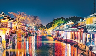 浙江省嘉興市嘉善縣西塘古鎮(zhèn)近年來(lái)加快推進(jìn)“微改造、精提升”,助推古鎮(zhèn)夜經(jīng)濟(jì)發(fā)展。圖為古鎮(zhèn)夜景。袁新宇攝(人民視覺(jué))