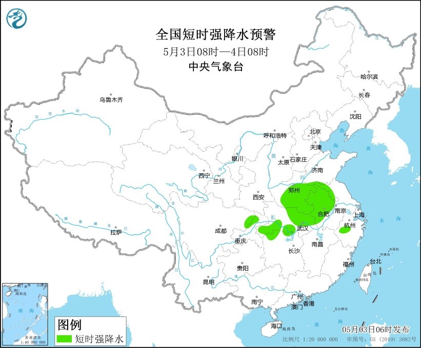 預(yù)計5月3日08時至4日08時,河南東部和南部、安徽中北部、湖北東部等地的部分地區(qū)將有8-10級雷暴大風(fēng)或冰雹天氣;山東南部、河南中東部和南部、安徽中北部、江蘇西北部、湖北東部和西南部、湖南北部、四川東北部、重慶東北部等地的部分地區(qū)將有短時強(qiáng)降水天氣,小時雨量20-40毫米,局地可達(dá)50毫米以上。