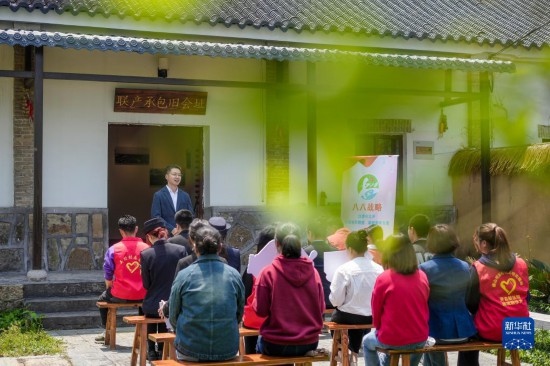 5月4日,在浙江省湖州市長興縣和平鎮(zhèn)狄家 村,當(dāng)?shù)厍嗄旮刹繃惶霉采锑l(xiāng)村改革,暢談家鄉(xiāng)發(fā)展。