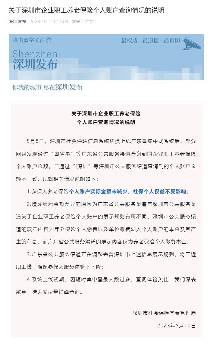 ·深圳社保系統(tǒng)切換,個人賬戶大幅減少?官方回應(yīng):實(shí)際金額未減少,個人權(quán)益不受影響。