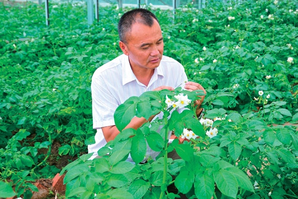 在青藏高原工作近40年,年近六旬的王艦帶領(lǐng)團(tuán)隊培育的“青薯”系列馬鈴薯品種得到大面積推廣。這些耐旱高產(chǎn)品種,抗病性強(qiáng),據(jù)統(tǒng)計可使每畝增產(chǎn)25%至50%,增收300元到400元,成為農(nóng)民脫貧致富的“金豆豆”。
