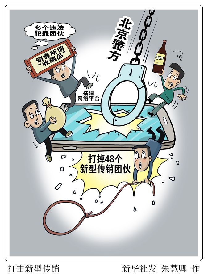 新華社北京5月13日電(記者魯暢、吳文詡)“5·15”全國(guó)公安機(jī)關(guān)打擊和防范經(jīng)濟(jì)犯罪宣傳日來(lái)臨之際,北京警方通報(bào)去年以來(lái)針對(duì)新型傳銷(xiāo)團(tuán)伙打擊情況:多個(gè)違法犯罪團(tuán)伙通過(guò)搭建網(wǎng)絡(luò)平臺(tái)銷(xiāo)售所謂“收藏品”,并通過(guò)招募會(huì)員,循環(huán)售賣(mài)炒至高價(jià),造成“底層會(huì)員”承擔(dān)高額損失,已有48個(gè)團(tuán)伙被打掉。