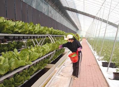 工作人員在現(xiàn)代農(nóng)業(yè)產(chǎn)業(yè)園的大棚里勞作。