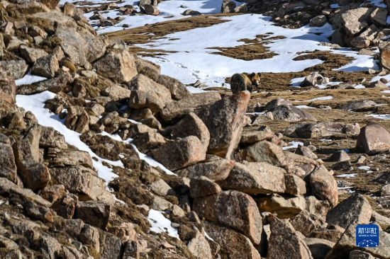 一頭藏馬熊在阿爾金山國(guó)家級(jí)自然保護(hù)區(qū)覓食(5月23日攝)。
