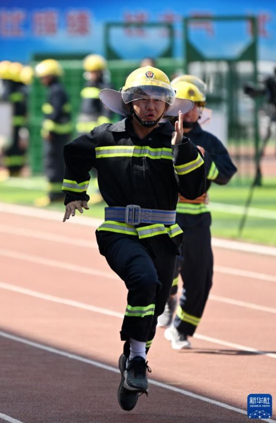 6月2日,微型消防站代表參加原地著裝加佩戴空氣呼吸器消防業(yè)務(wù)技能比武。