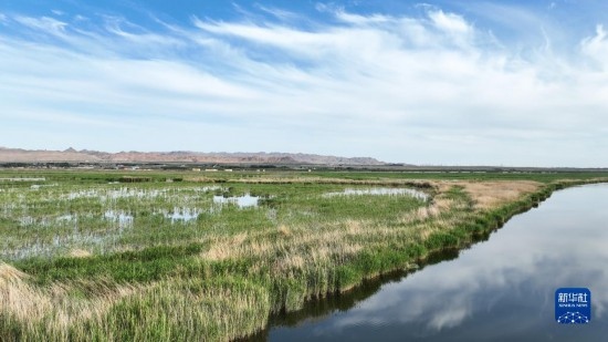 這是6月4日拍攝的位于內(nèi)蒙古巴彥淖爾市烏拉特前旗的烏梁素海(無人機(jī)照片)。