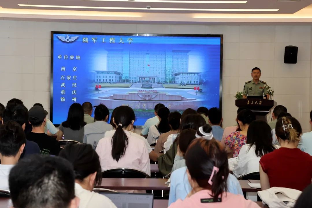 來自陸軍工程大學(xué)政工系的任佳瑩走上講臺,為學(xué)生們現(xiàn)身說法,詳細(xì)分享了自己從一名普通文職人員成長為教授的經(jīng)歷,贏得學(xué)生們羨慕的目光。該校物理學(xué)院聲學(xué)專業(yè)的碩士研究生梁詩琪說:“真的很期盼早日成為軍隊文職的一員?!?/p>