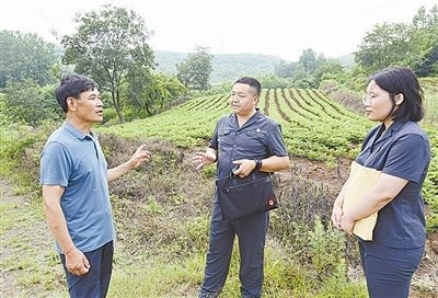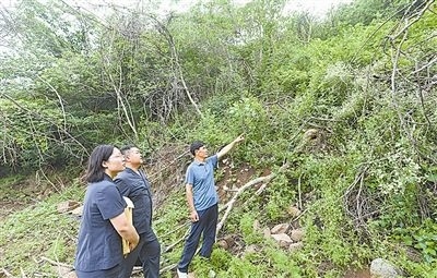 6月20日,安徽省明光市人民法院澗溪人民法庭法官頭頂炎炎烈日,穿越泥濘山道,徒步三公里,登上葛藤窩山,到一起環(huán)境污染責(zé)任糾紛案的現(xiàn)場(chǎng)查看樹木受損情況。