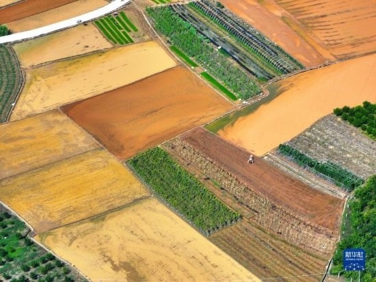 7月21日,農(nóng)民在南寧市青秀區(qū)長(zhǎng)塘鎮(zhèn)耕田(無人機(jī)照片)。新華社記者 周華 攝
