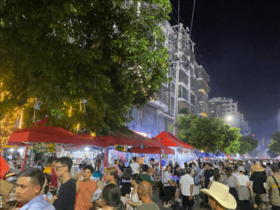 一位賣榕江卷粉、芋頭糕等特色小吃的小吃攤攤主說:“我們從早忙到晚,擺攤到凌晨1點(diǎn)鐘左右,人太多了,一天能賣幾百碗。”