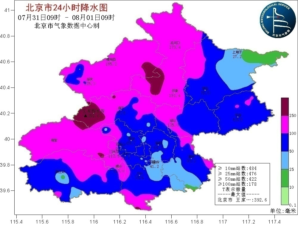 據(jù)北京市氣象臺(tái)消息,29日20時(shí)至8月1日7時(shí),北京地區(qū)全市平均降雨量260.0毫米,城區(qū)平均235.3毫米,房山區(qū)平均415.4毫米,門頭溝區(qū)平均471.1毫米;最大小時(shí)雨強(qiáng)出現(xiàn)在豐臺(tái)千靈山,31日10-11時(shí)111.8毫米/小時(shí)。