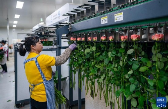 每天,由花農(nóng)采摘的鮮花進入分揀包裝車間,預(yù)冷、分級、包裝、入庫冷藏等工作井然有序地開展。經(jīng)過采后處理的鮮花一部分通過園區(qū)自有物流直接向客戶發(fā)貨,一部分則由專門的鮮花運輸車運往昆明國際花卉拍賣交易中心,開啟拍賣流程。