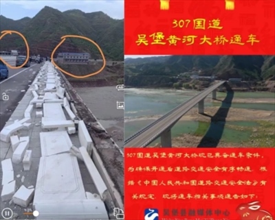 ·通車半年多,跨省黃河大橋的護欄被風吹倒。陜西榆林市吳堡縣:成立調(diào)查組。