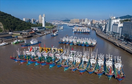 8月6日,停泊在舟山普陀沈家門漁港的漁船即將出港。專項特許捕撈漁船結(jié)束休漁,于6日開赴東海海域,進行捕撈作業(yè)。