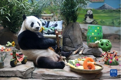 8月11日是大熊貓“剛剛”(小名“青城”)的6歲生日,鞍山動物園為它準(zhǔn)備了特制的生日大餐,眾多市民游客前來為它慶生。
