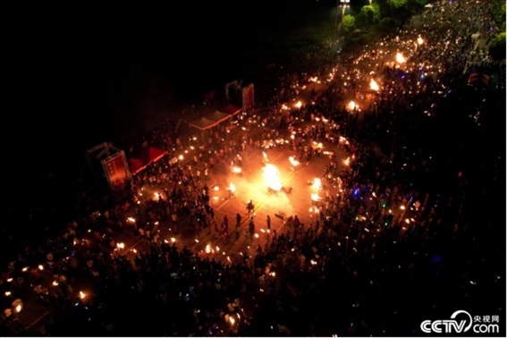 2023年8月10日,云南楚雄舉行中國·楚雄2023年彝族火把節(jié)活動,游客與當(dāng)?shù)孛癖娨黄饸g慶火把節(jié)。