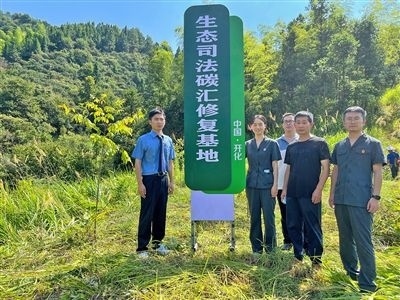 “為了體現(xiàn)對(duì)碳匯價(jià)值的重視、展示破壞必追償?shù)臎Q心,同時(shí)也為了宣傳國家碳達(dá)峰碳中和理念、增強(qiáng)公眾的環(huán)保參與意識(shí),我們專門設(shè)立了生態(tài)司法碳匯修復(fù)基地?!贬橹葜性涵h(huán)境資源旅游審判庭庭長祝惠忠介紹,基地主要用于損害林業(yè)資源案件中的補(bǔ)植復(fù)綠,借助“法官+檢察官+警長+林長”機(jī)制,結(jié)合案件回訪、山林巡邏、專家管護(hù)等措施,做到對(duì)苗木存活率、生長情況的持續(xù)跟蹤、動(dòng)態(tài)掌控、閉環(huán)管理。