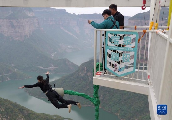 近年來,河南省輝縣市依托南太行山優(yōu)質旅游資源,積極探索沉浸式文旅新模式,打造以“崖”為主題的景區(qū),建成投運了“空中巴士”、蹦極等懸崖文旅項目,讓廣大游客沉浸式游覽在懸崖峭壁之中。