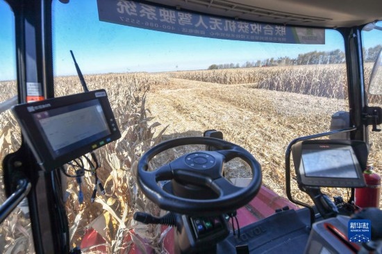 10月19日,在中國科學院“黑土糧倉”科技會戰(zhàn)長春示范區(qū)公主嶺示范基地,無人駕駛農(nóng)機在收獲玉米。