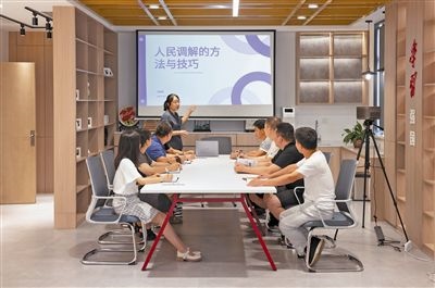 圖④:調(diào)解員培訓。圖為楓橋法庭法官為轄區(qū)人民調(diào)解員進行現(xiàn)場培訓,從如何提升調(diào)解工作的方法與技巧入手結(jié)合案例逐一進行指導。